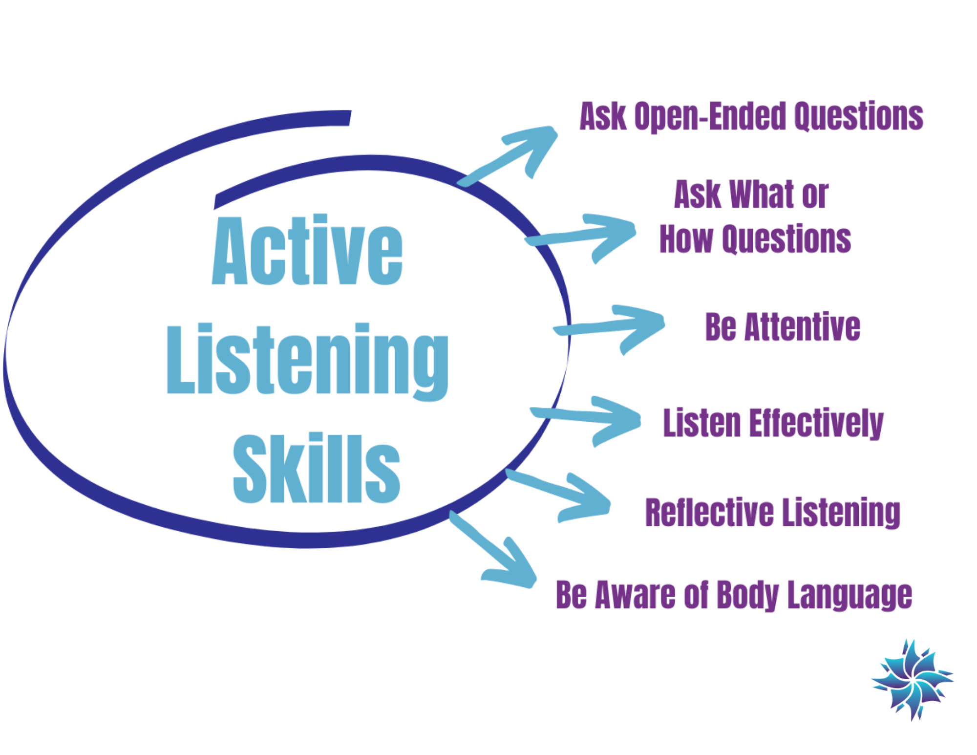 Use active listening skill componets, and check the show notes for a link to a graphic that lists all six.